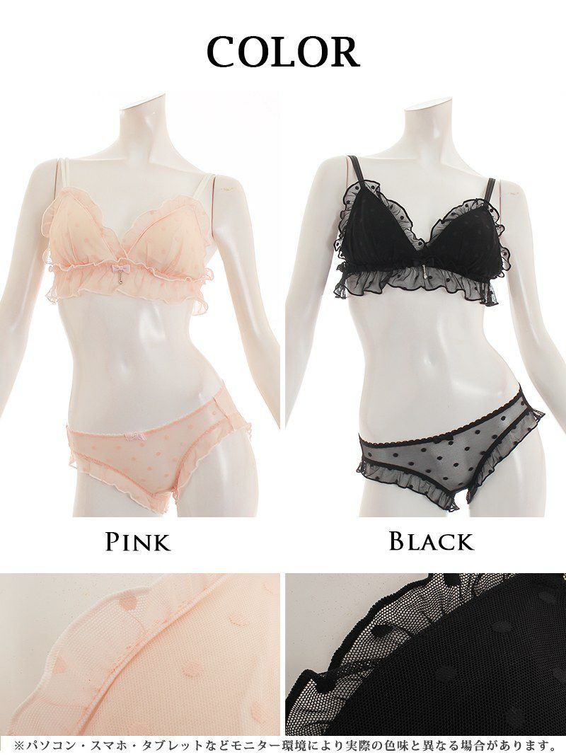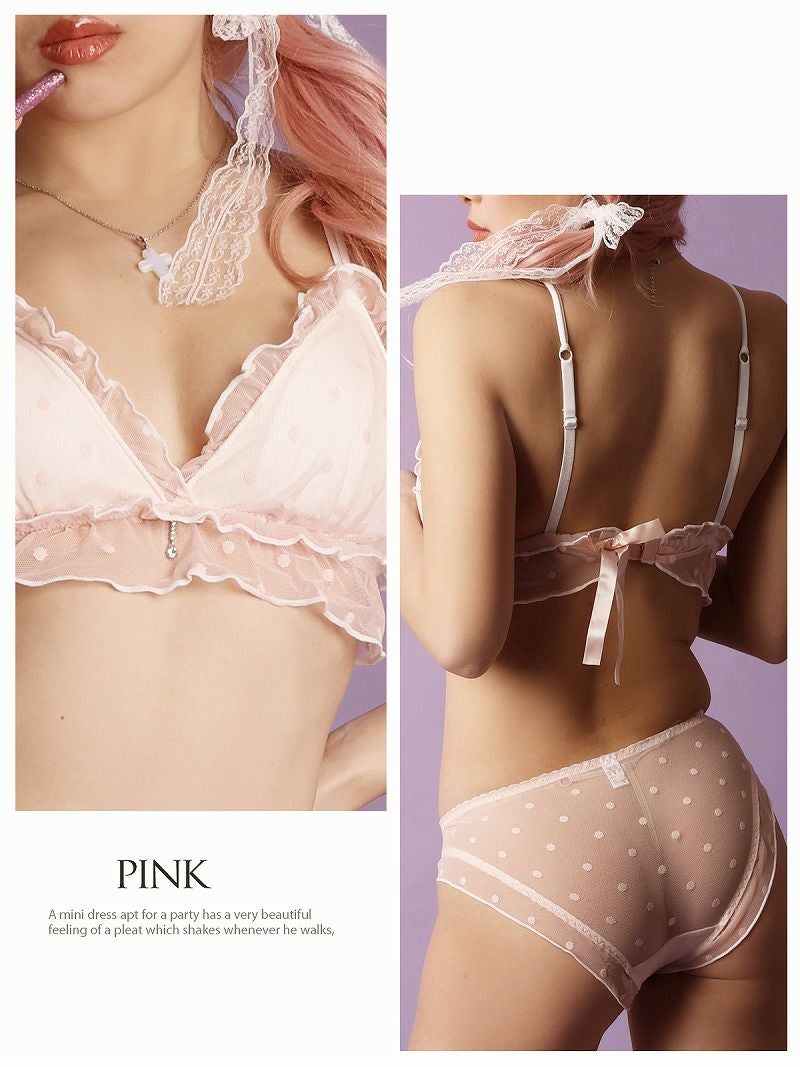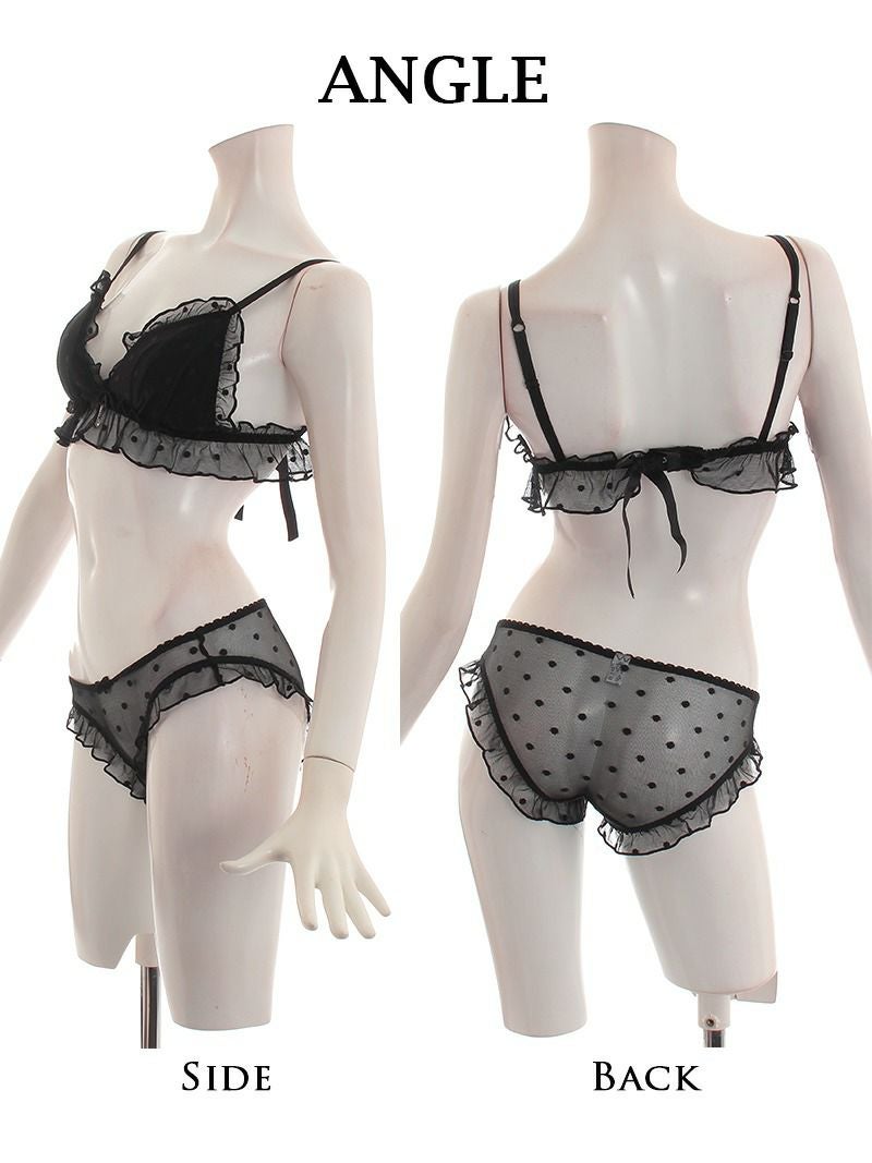 セクシーで甘め☆ドット柄レースのふりふりランジェリーセット!