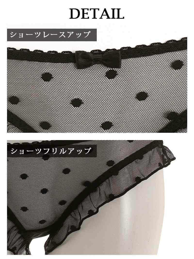 ふりふりドット柄で可愛い☆谷間も強調するシースルーランジェリー!