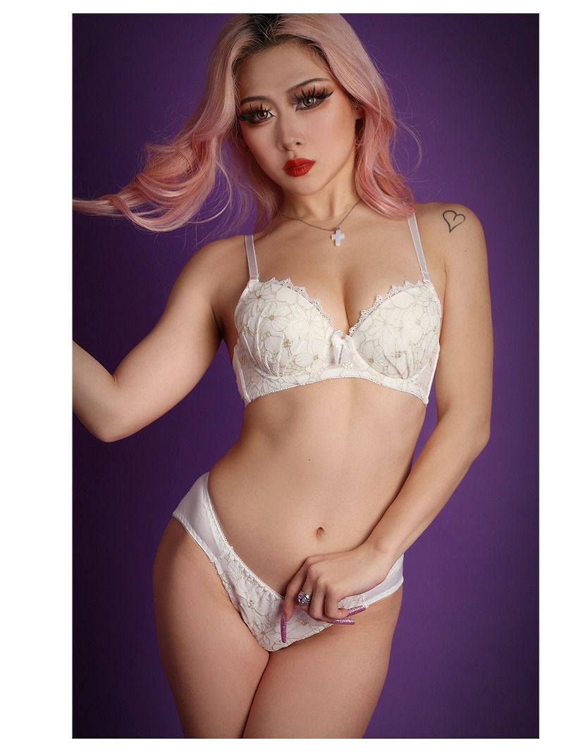 花柄刺繍が可愛い!谷間盛れるブラ&ショーツセット☆