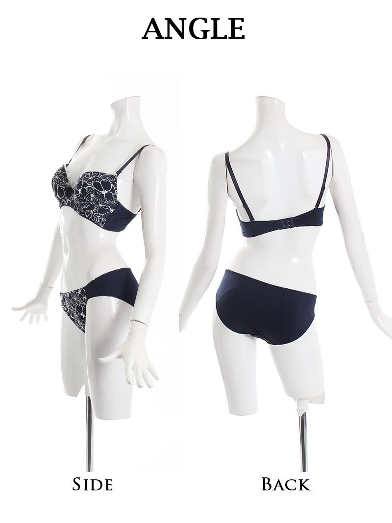 盛りブラで谷間強調☆上品な花柄刺繍のセット下着!
