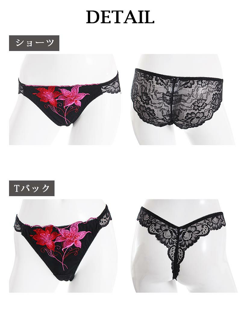 【ショーツ】身生地:ナイロン 90% ポリウレタン 10% 刺繍レース:ナイロン