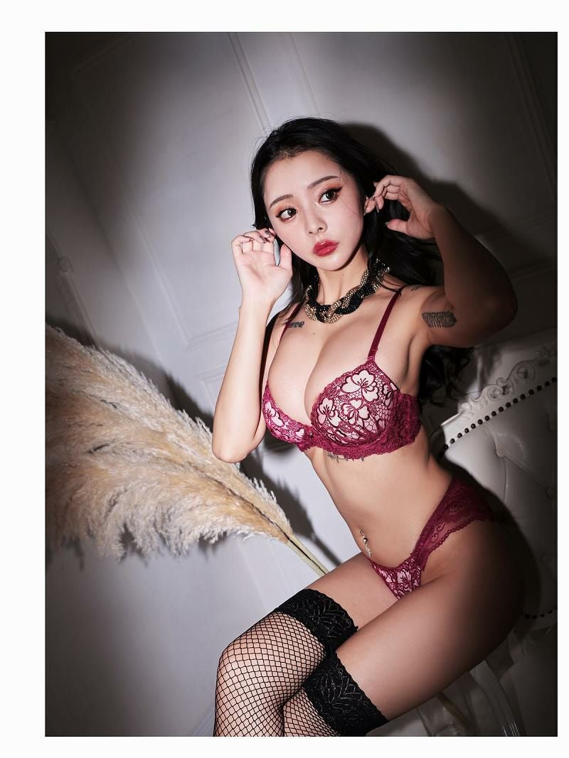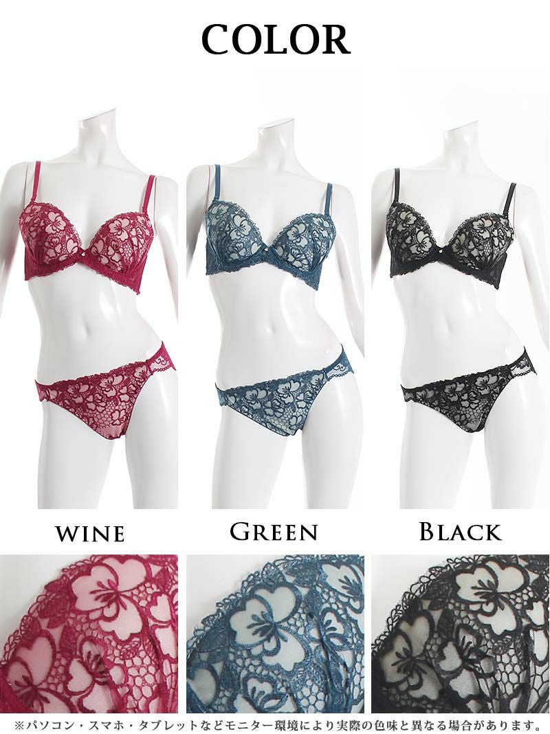 透け感たっぷりの刺繍レースで色気溢れる3点セット