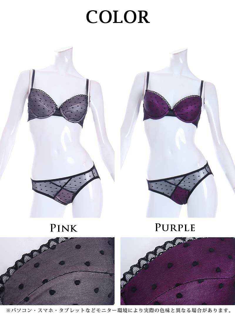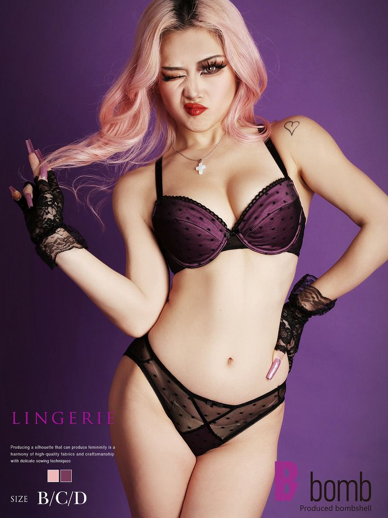 紫とピンクのドット柄があざと可愛いセクシーランジェリー!