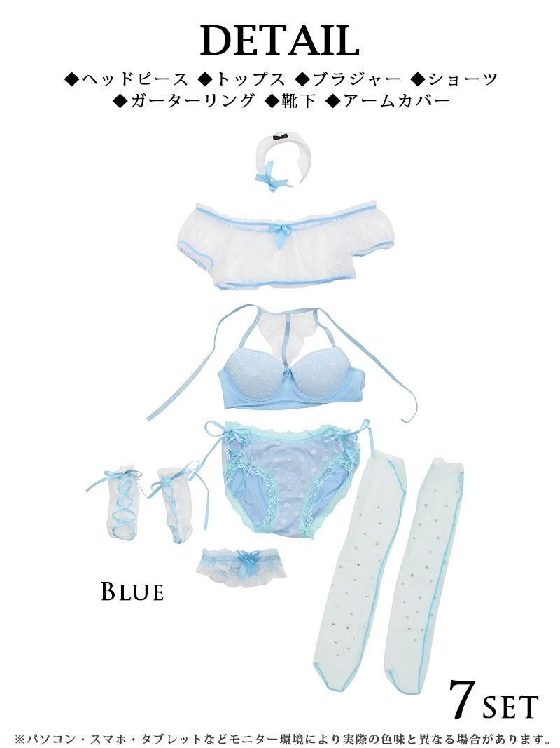 セット内容:ヘッドピース・トップス・ブラジャー・ショーツ・ガーターリング・靴下・アームカバー