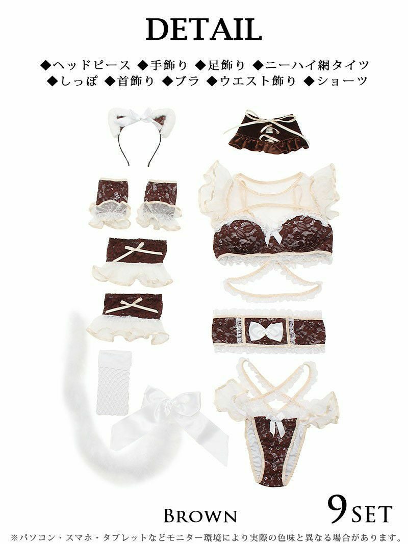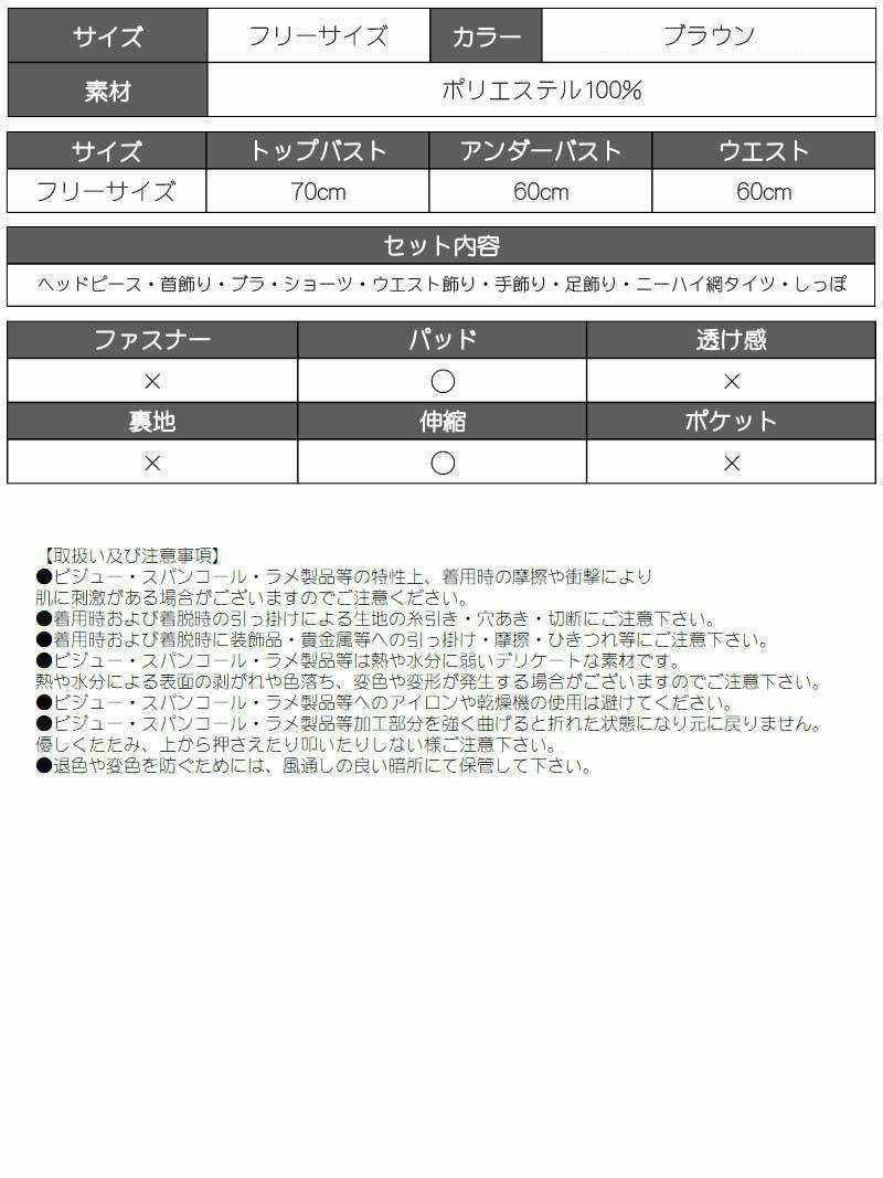 セット内容:ヘッドピース・首飾り・ブラ・ショーツ・ウエスト飾り・手飾り・足飾り・ニーハイ網タイツ・しっぽ