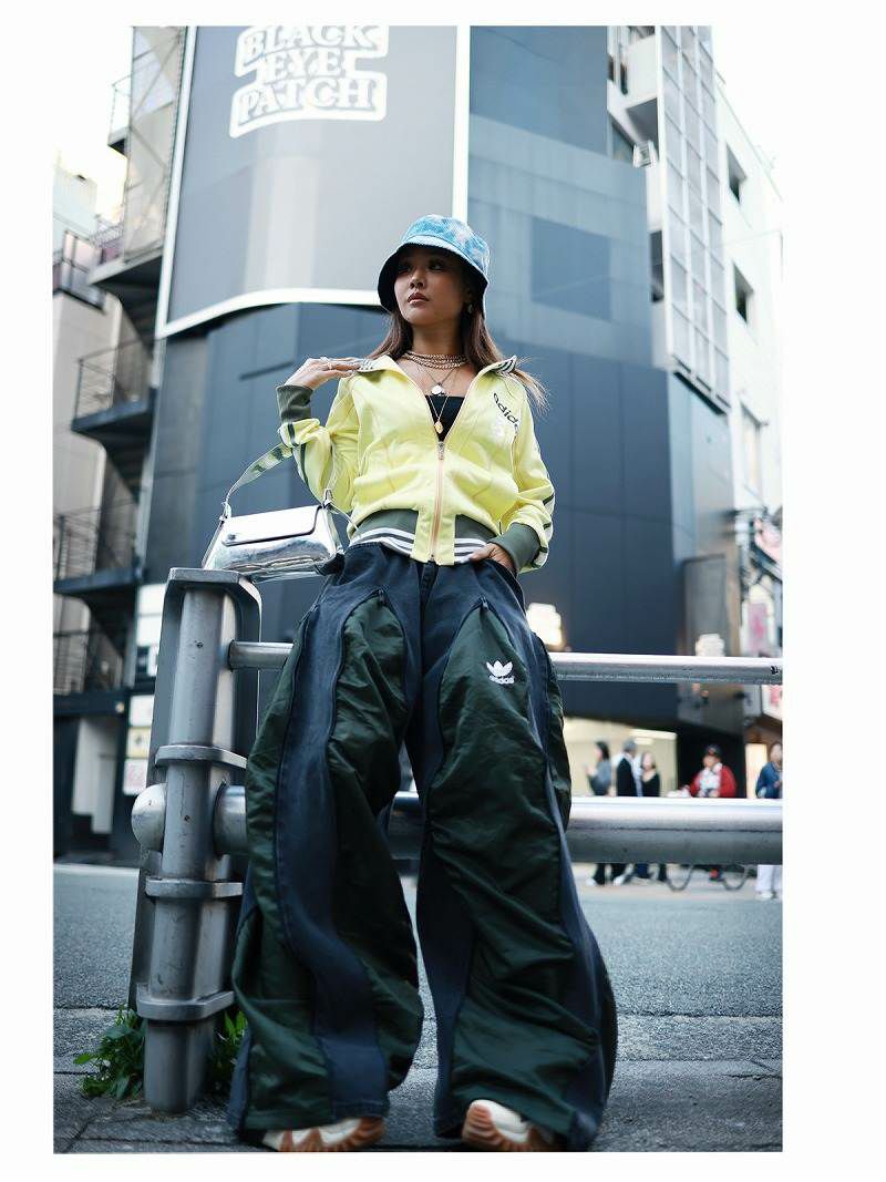 フロントのadidasロゴがアクセントになり、韓国ファッションやY2Kスタイルをクールに演出します。