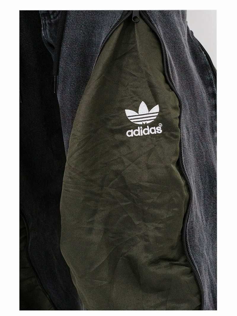 武骨なウォッシュブラックデニムに、ミリタリーなカーキ(オリーブ)の中綿素材をドッキングした異素材ミックスの再構築デニム。