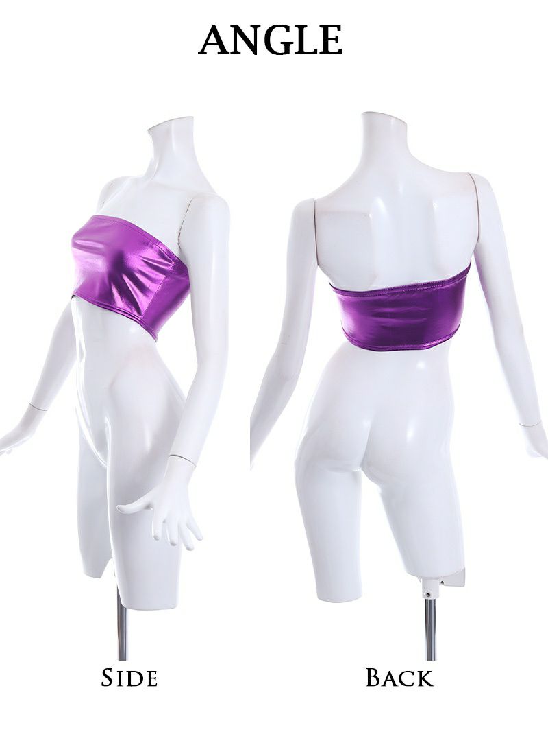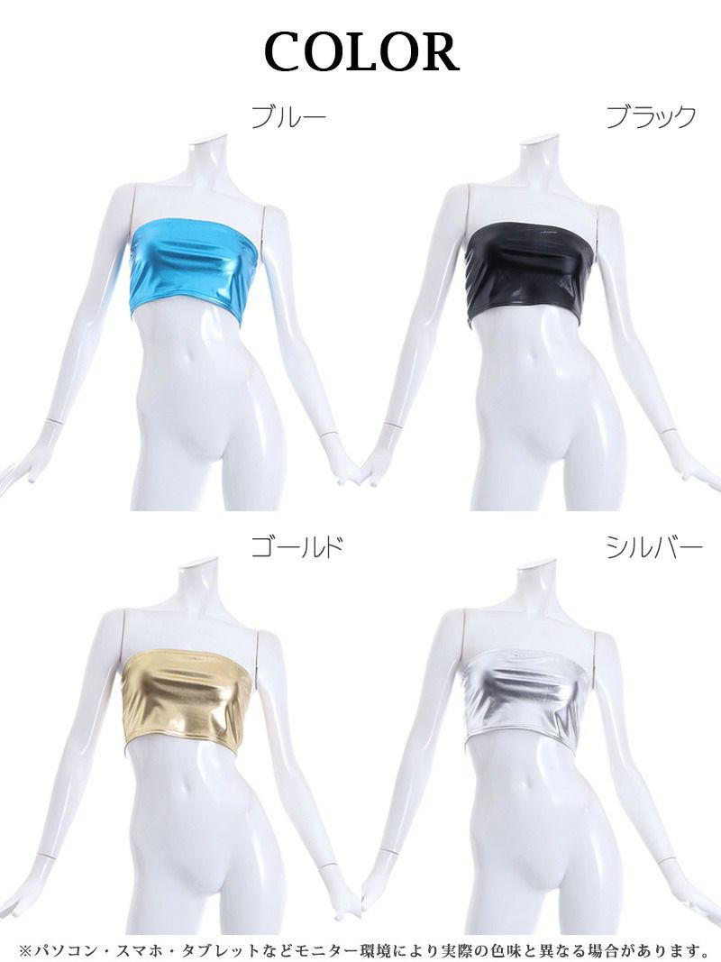 スパンコールよりクールで大人っぽい演出に見せるメタルチューブトップはステージ映え間違いなしのベアトップです。