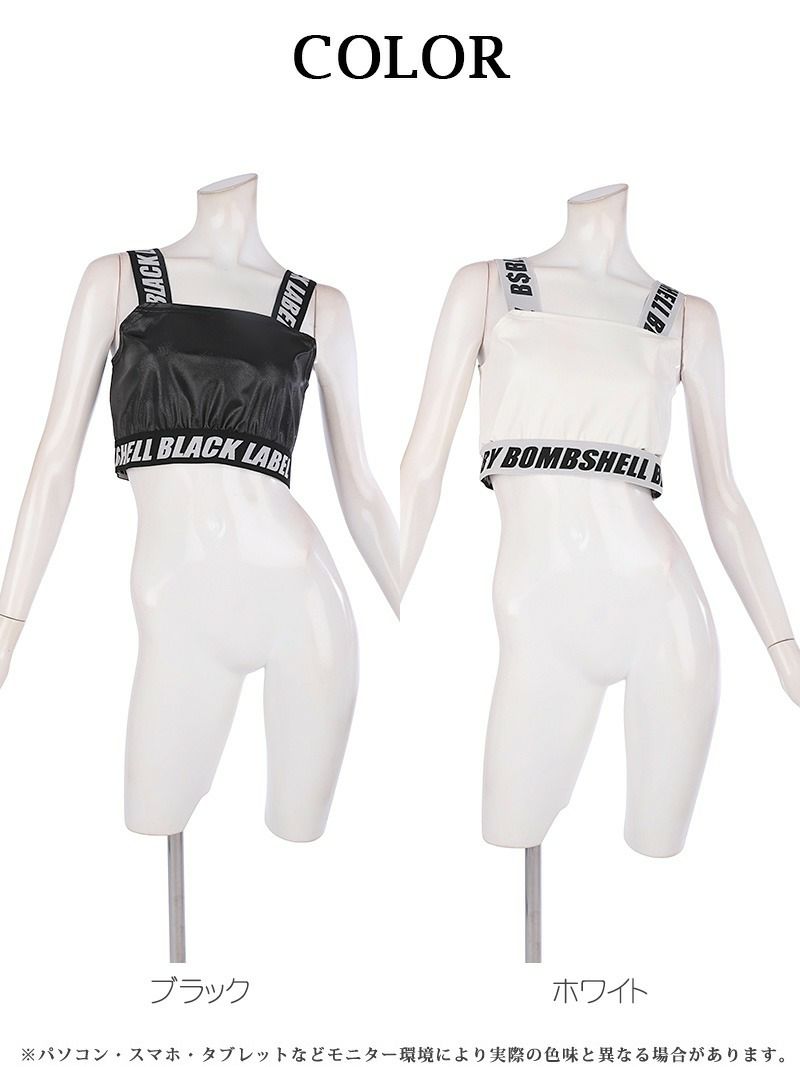 bombshellの文字がテープデザインのようにあしらわれたショート丈タンクが超COOL!