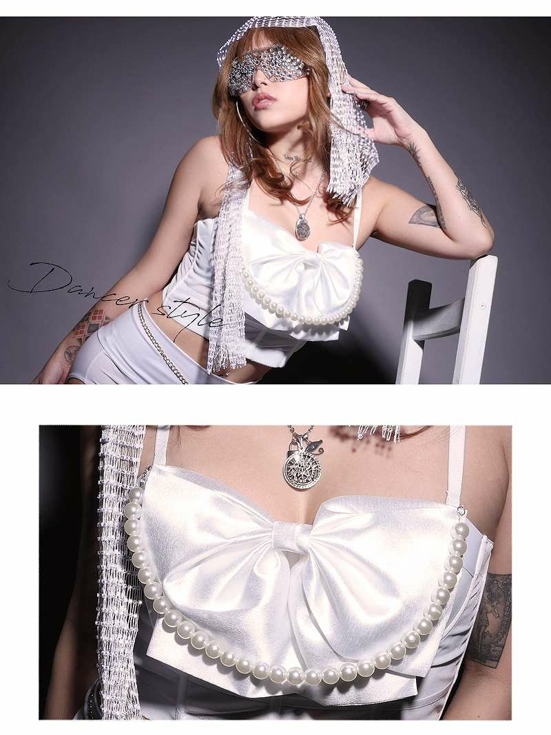 大きめリボン×パールで映え確定!旬のビスチェトップス。
