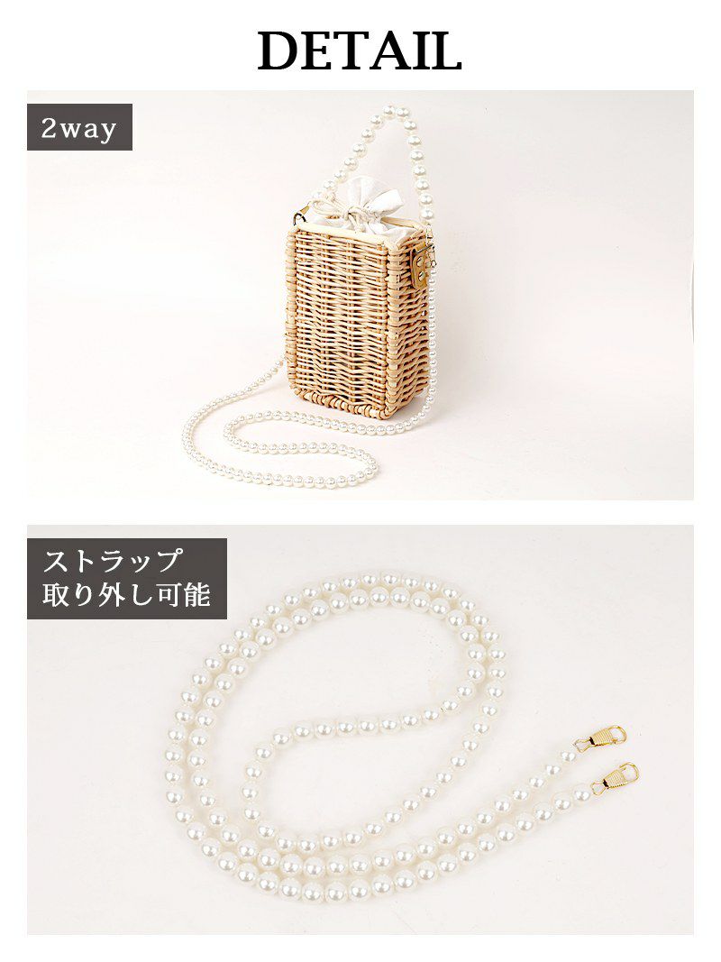 パール持ち手が映えるミニカゴバッグで浴衣映え◎