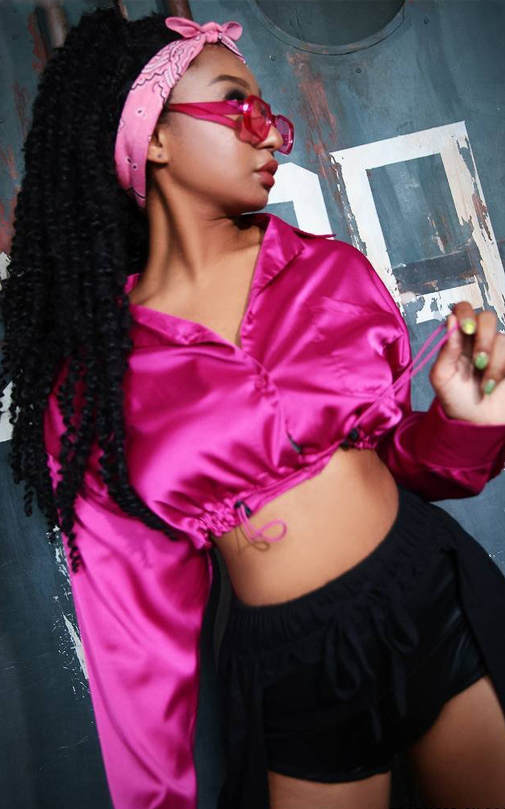 マイクロミニパンツに合わせることでSEXYさをプラスして女性らしさを演出。