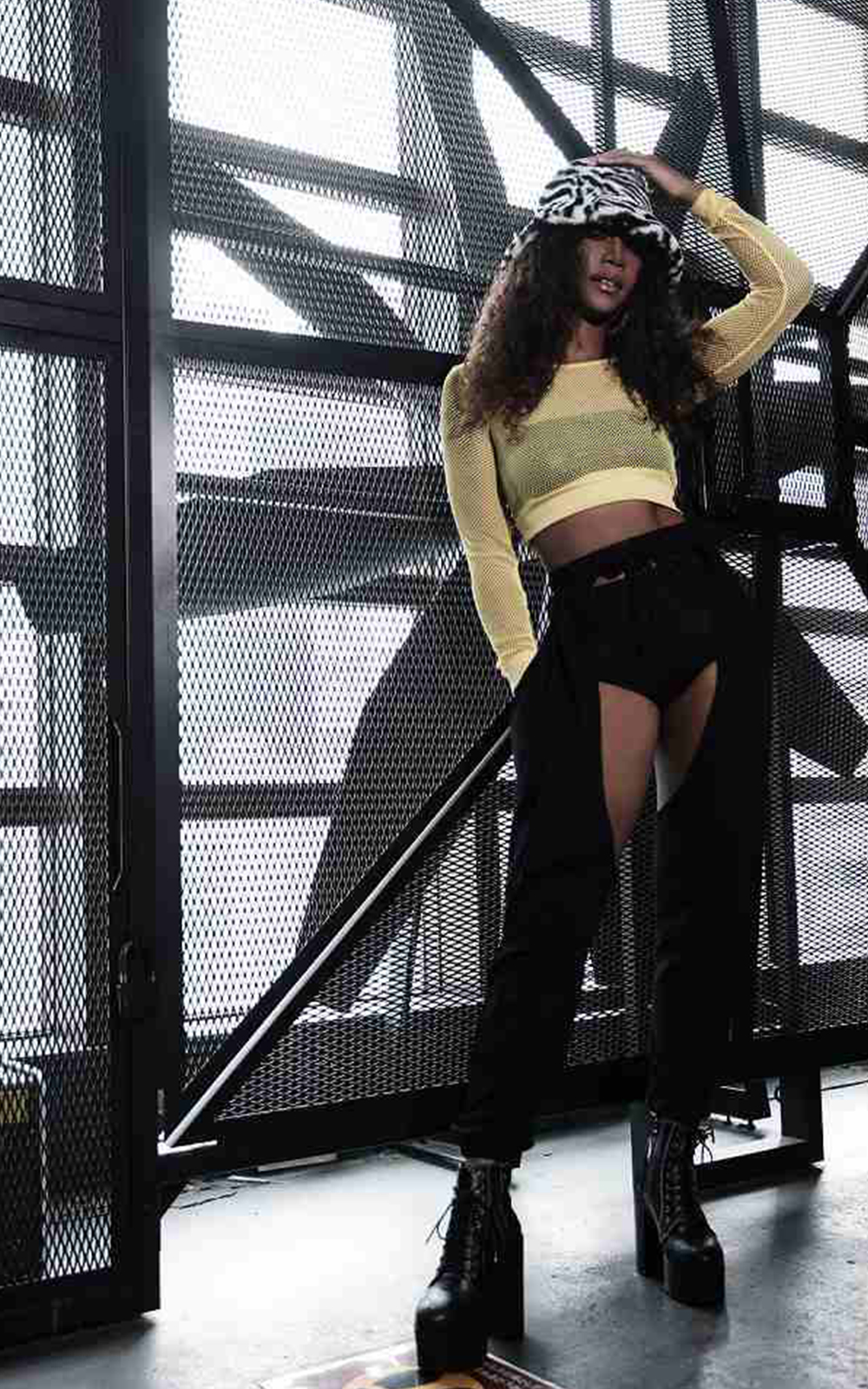 フィッシュネットでボディラインをよりセクシーに魅せたダンサーコーデ。