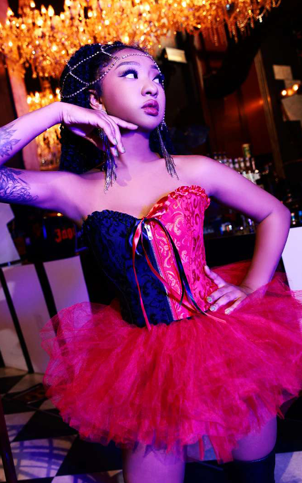 Redのミニパニエでガールズらしさを出したSexyなトータルコーデ。