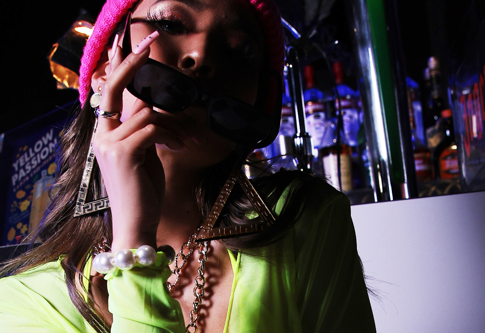 派手すぎる位のゴールドアクセや お腹見せスウェットをあわせるのがオススメ